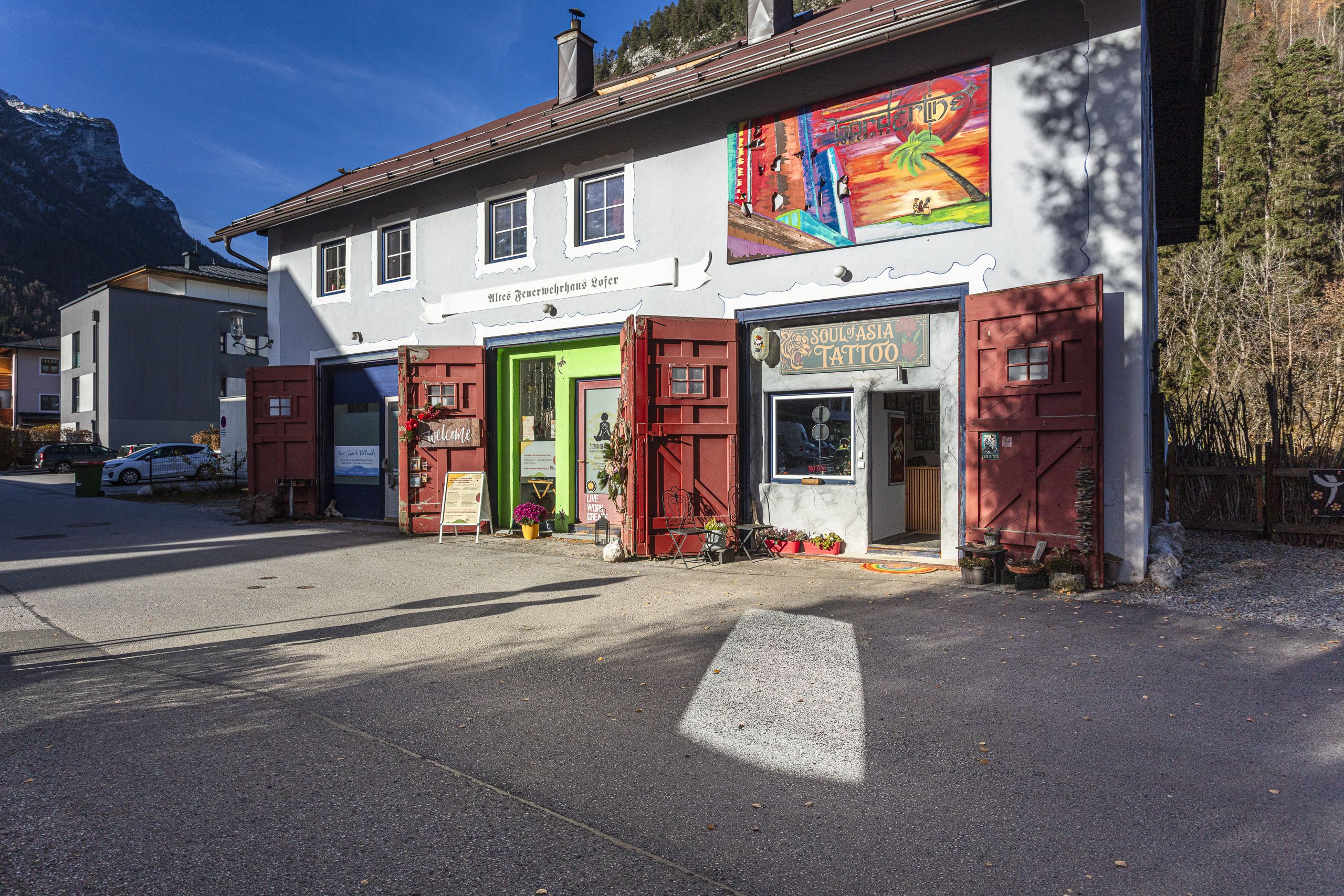 Schon von außen zieht das Haus alle Blicke auf sich – mit einem eindrucksvollen Wandgemälde von Salvador Dalí, geschaffen vom Künstler Martin Leitinger. Besonders charmant: Der heutige Tätowierraum war früher das Tonstudio von Martin Leitinger, Sänger der Band Rubberfresh – ein Ort, an dem bereits Musik und Kreativität zuhause waren.